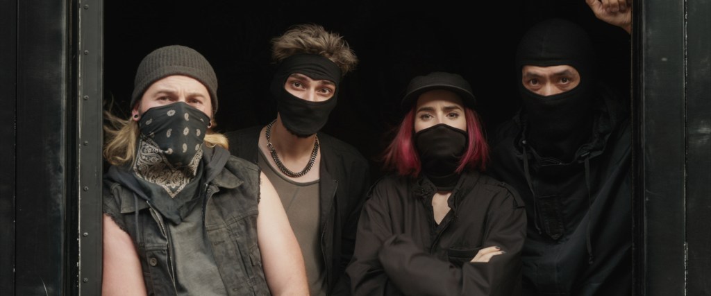 By the end of the movie, only Mija and Okja escape either ridicule or outright condemnation by the filmmakers, and perhaps that’s fitting. Even the Animal Liberation Front (ALF) is portrayed in parody (albeit much more lovingly than the Mirando employees). They first appear wearing ski masks while intimidating the truck driver transporting Okja in Seoul to pull over — but they make it very clear that they are “not terrorists.” Before they crash that truck inside of a busy tunnel, they go out of their way to make sure that everyone in the other vehicle is wearing their seatbelts. And, though they brandish weapons while trying to get the animal to safety, they reassure Okja’s captors: “We come in peace!”