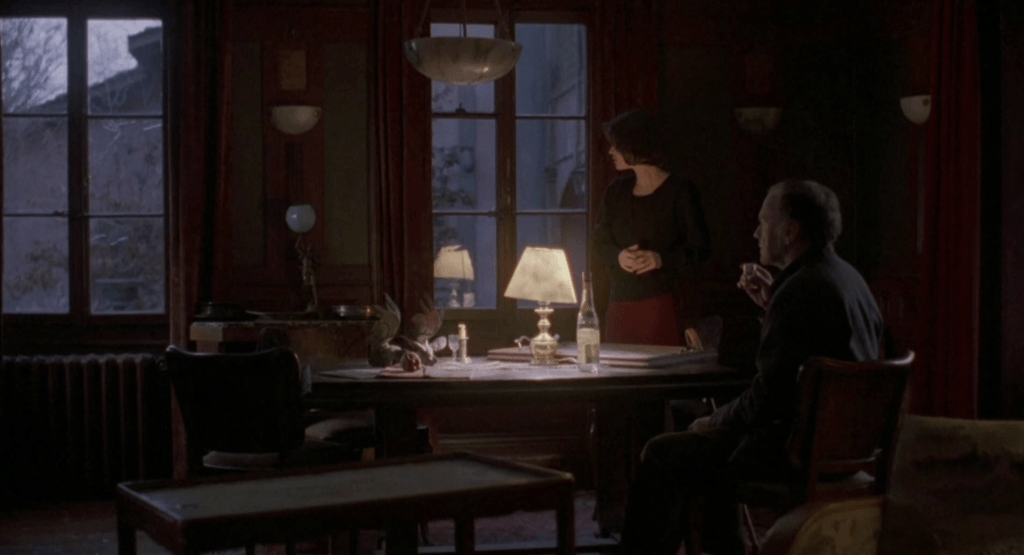 Coincidental events bring two unlikely characters, Valentine and Le Juge (an old, disgruntled, retired judge) together early on in Red; the rapport and relationship that develops between them forms the heart of the movie. At first, the old man appears to be irredeemable and cruel — the opposite of Valentine. He is melancholic, mysterious, and cynical; she is warm and loving. Both characters’ values are challenged and solidified through their interactions with one another.