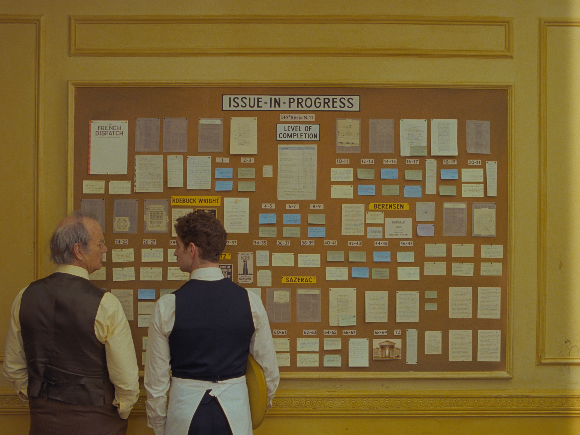 The movie opens with a lengthy sequence establishing the history of The French Dispatch, the people on its staff, and the personality and priorities of its editor. The most important line of dialogue in this sequence comes at the end of it, when a reporter debates with Howitzer about what articles should be edited or “killed,” because the latest copy of the Dispatch is far too long (in large part because Howitzer refuses to actually edit anything). On one particular essay, “we asked for twenty-five hundred words, and she [the reporter] came in at 14,000 plus footnotes, endnotes, a glossary, and two epilogues.”