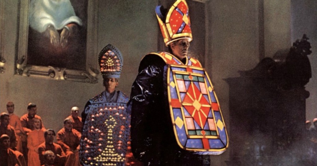 This kind of clash between virtue (specifically, religious virtue) and vice in Rome is most creatively and hilariously explored in the film’s boldest sequence: a fashion show hosted by a socialite in honor of a Cardinal, in which Nuns, Priests, and Cardinals — as well as a sit-in for the Pope — show off increasingly gaudy, extravagant costumes in a decidedly materialistic procession.